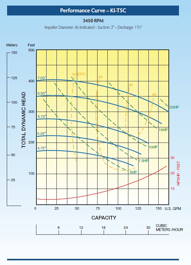 High Head Performance- 510 feet (220 psi) @ 4000 rpm